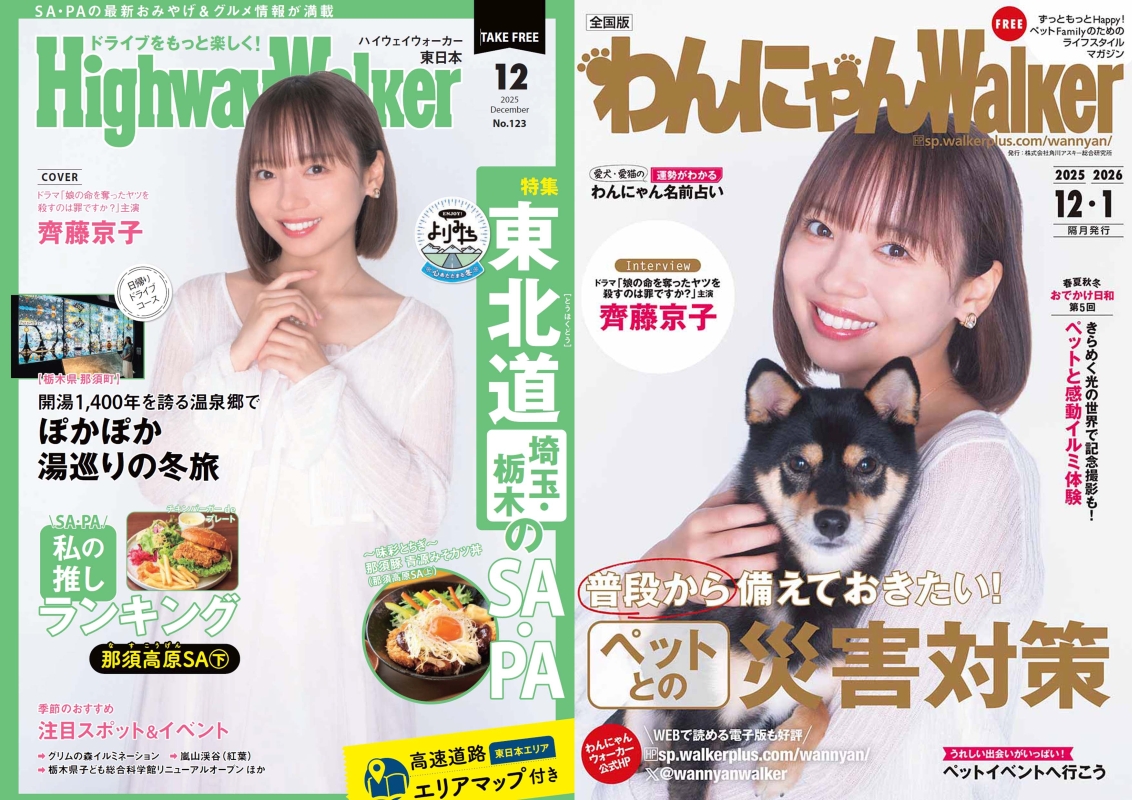 ドラマ『娘の命を奪ったヤツを殺すのは罪ですか?』で主演を務める齊藤京子さんが、『ハイウェイウォーカー』と『わんにゃんウォーカー』の表紙に登場! ドラマの見どころや撮影現場での秘話に加え、『ハイウェイウォーカー』ではクルマに関するエピソード、『わんにゃんウォーカー』ではペットに関するエピソードを伺っています。