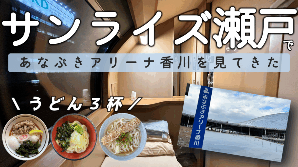 【YouTube連動|香川・高松坂出】サンライズ瀬戸で帰省|あなぶきアリーナ視察&「がもううどん」など讃岐うどん店めぐり
